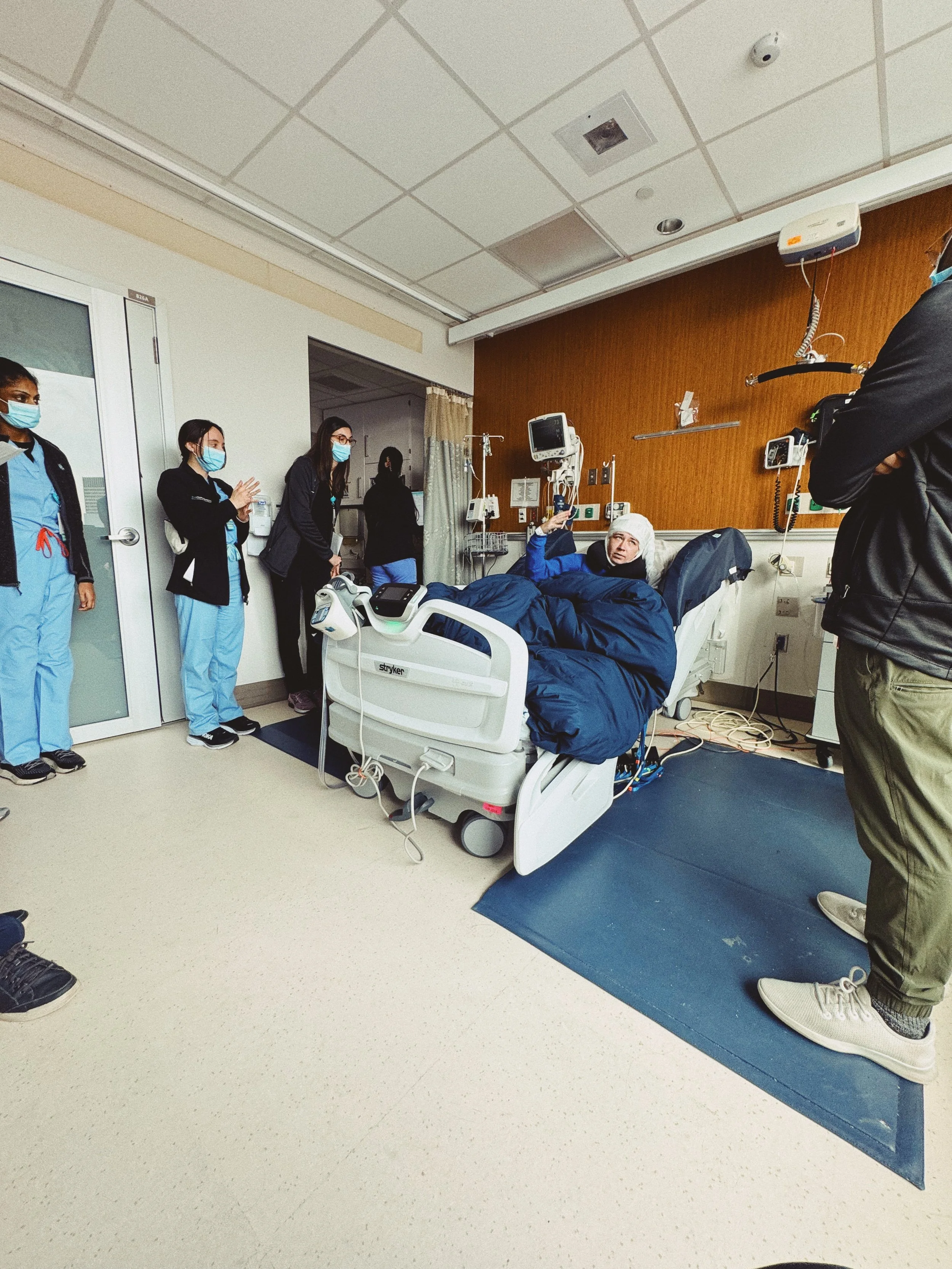 First and foremost, Caroline is still doing well managing pain and has been such a trooper about the constant poking and prodding. Aside from the occasional headache, Caroline is completely unaware of the depth electrodes themselves. She has (mostly) gotten the hang of navigating the massive/heavy gauze head wrap. The pet carrier case of cords still exists. We’ve gotten into a good medication schedule that everyone is on board with. She is eating more and staying hydrated! Shout-out to the quiche from Flour!